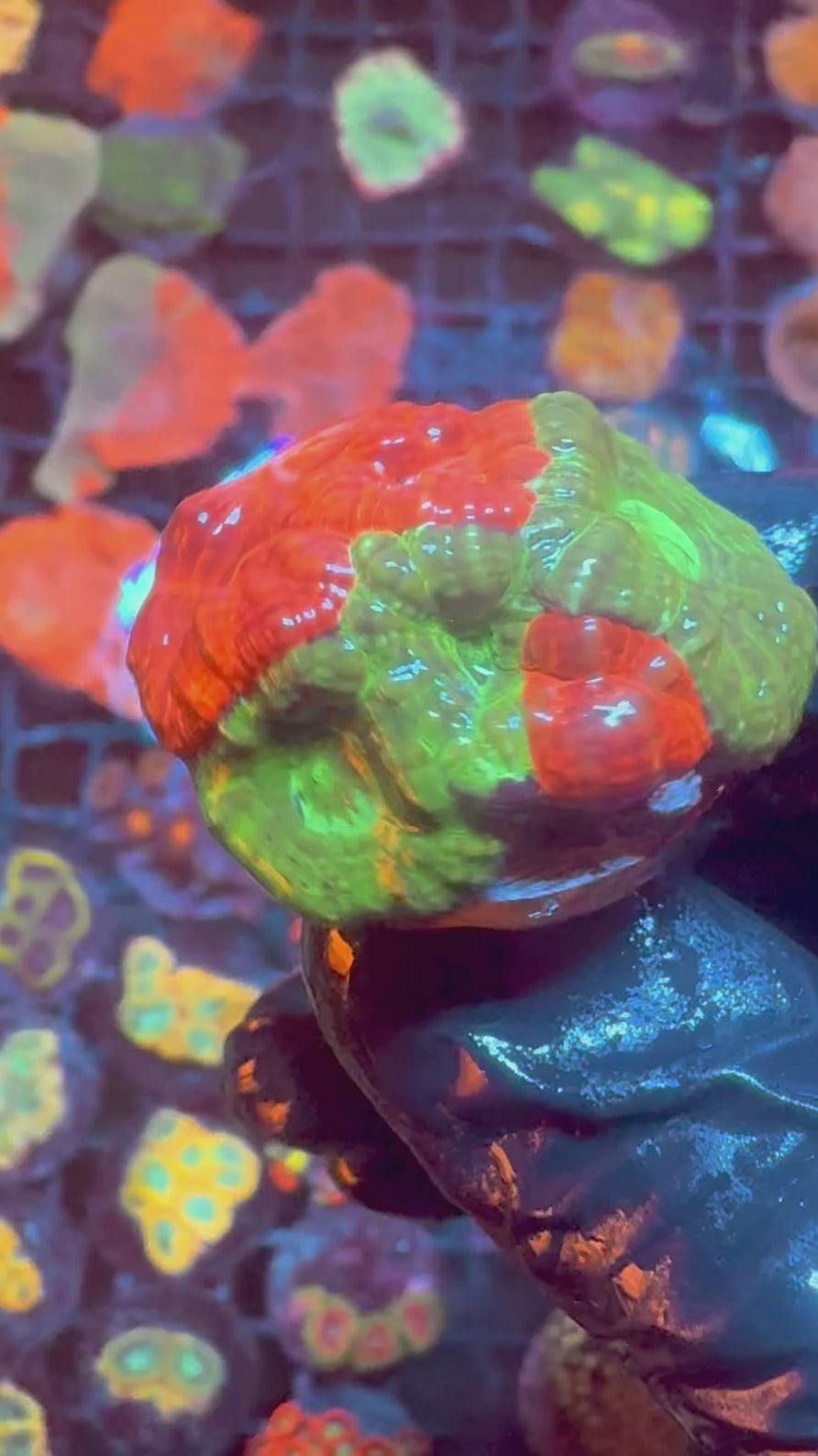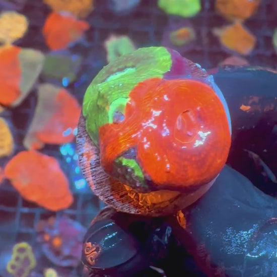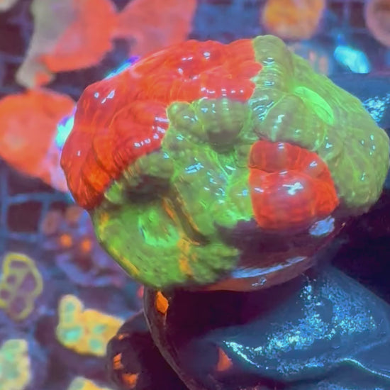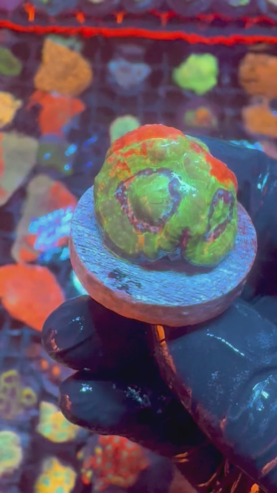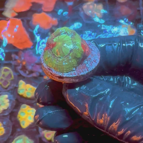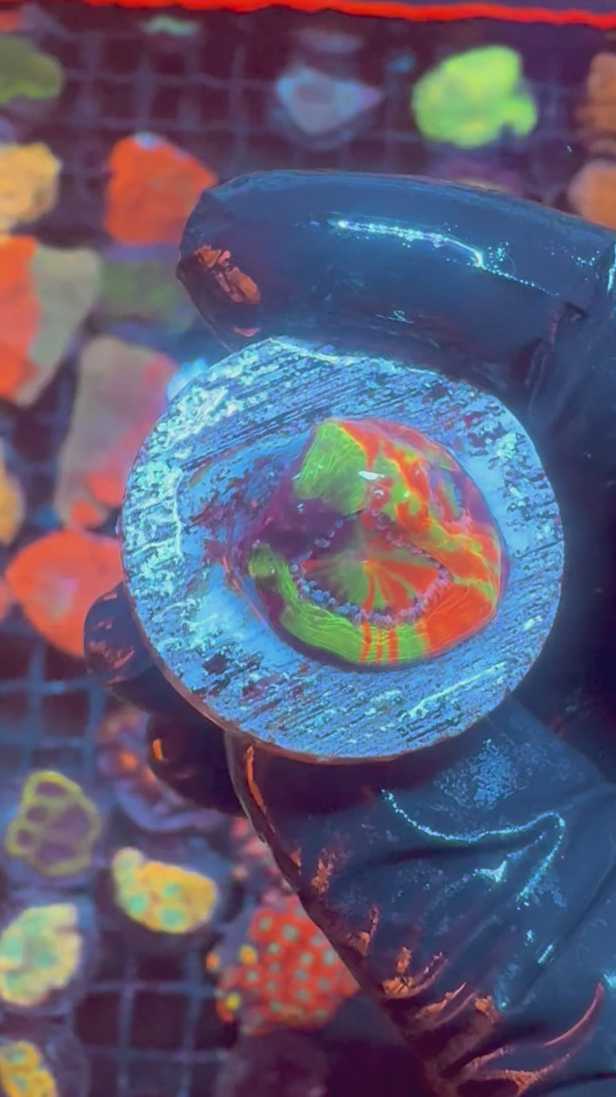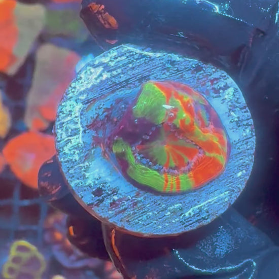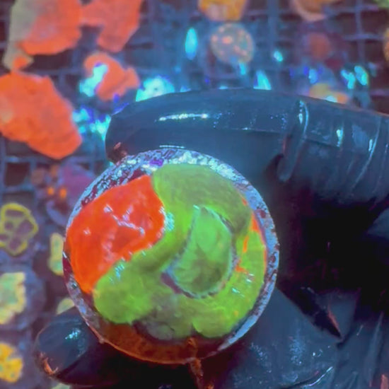 Der Bleeding Apple Bowerbanki Korallen-Ableger beeindruckt mit seinen intensiven Farben und hoher Stabilität. Diese Koralle wächst gut und eignet sich ideal für Einsteiger und erfahrene Meerwasseraquarianer.