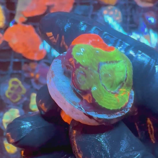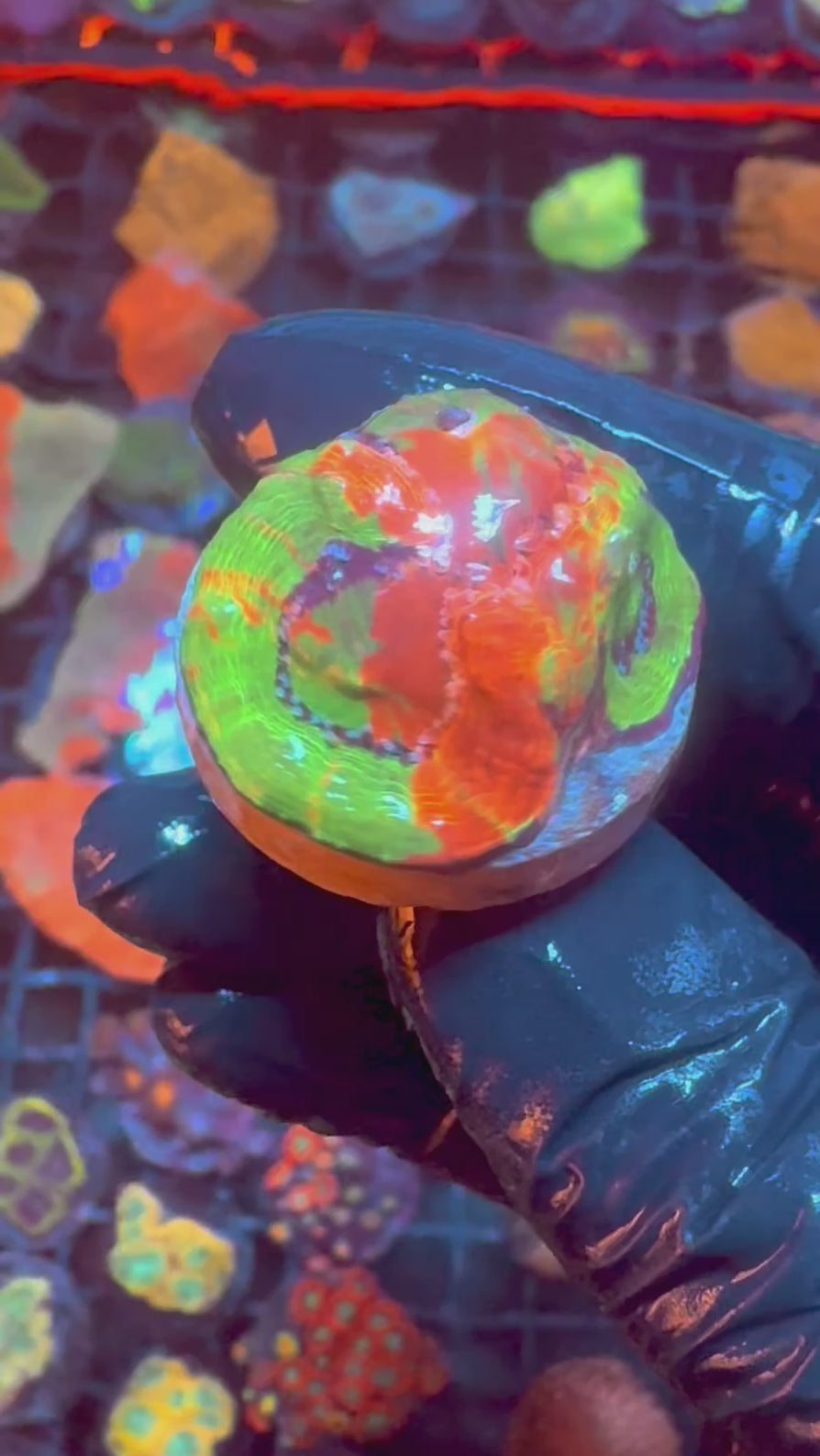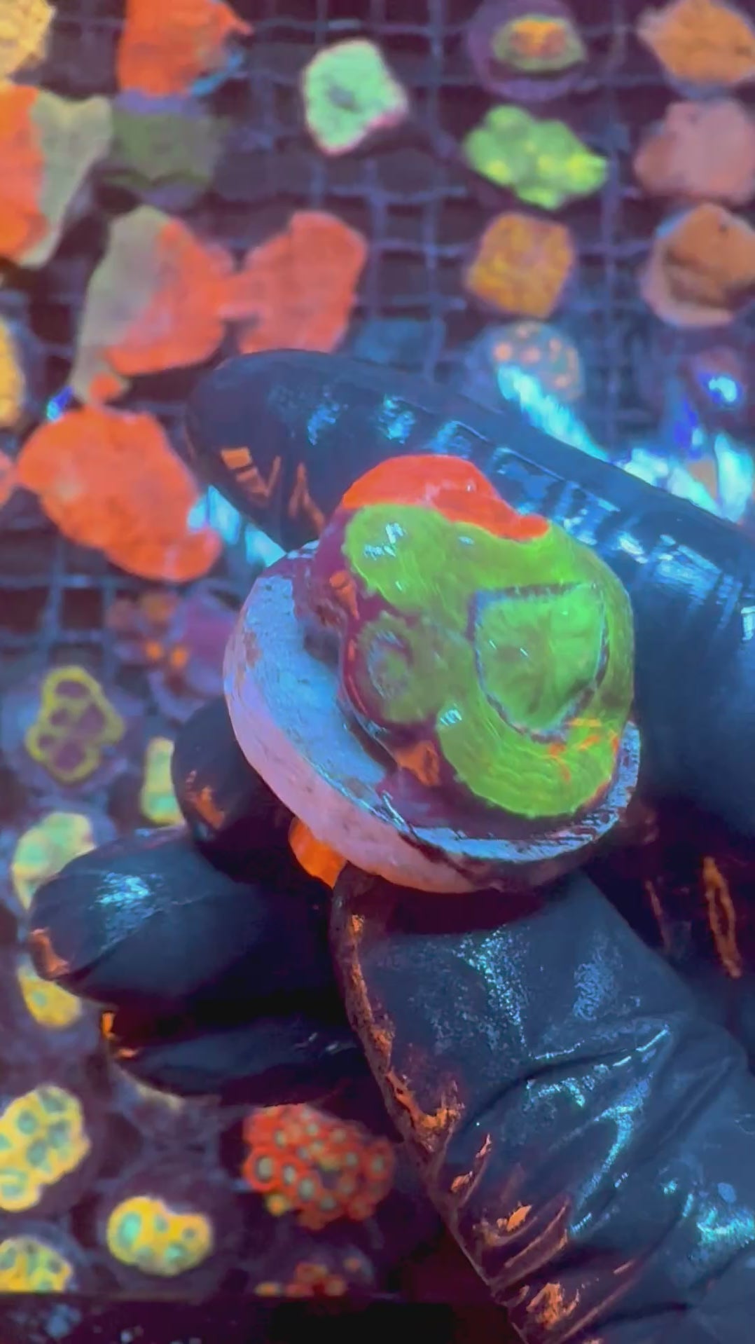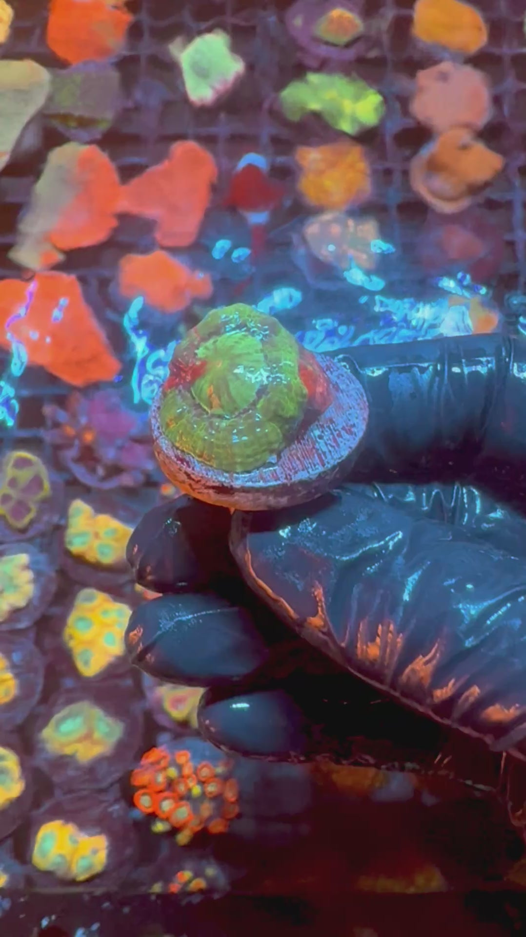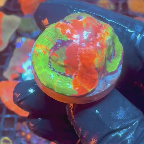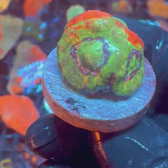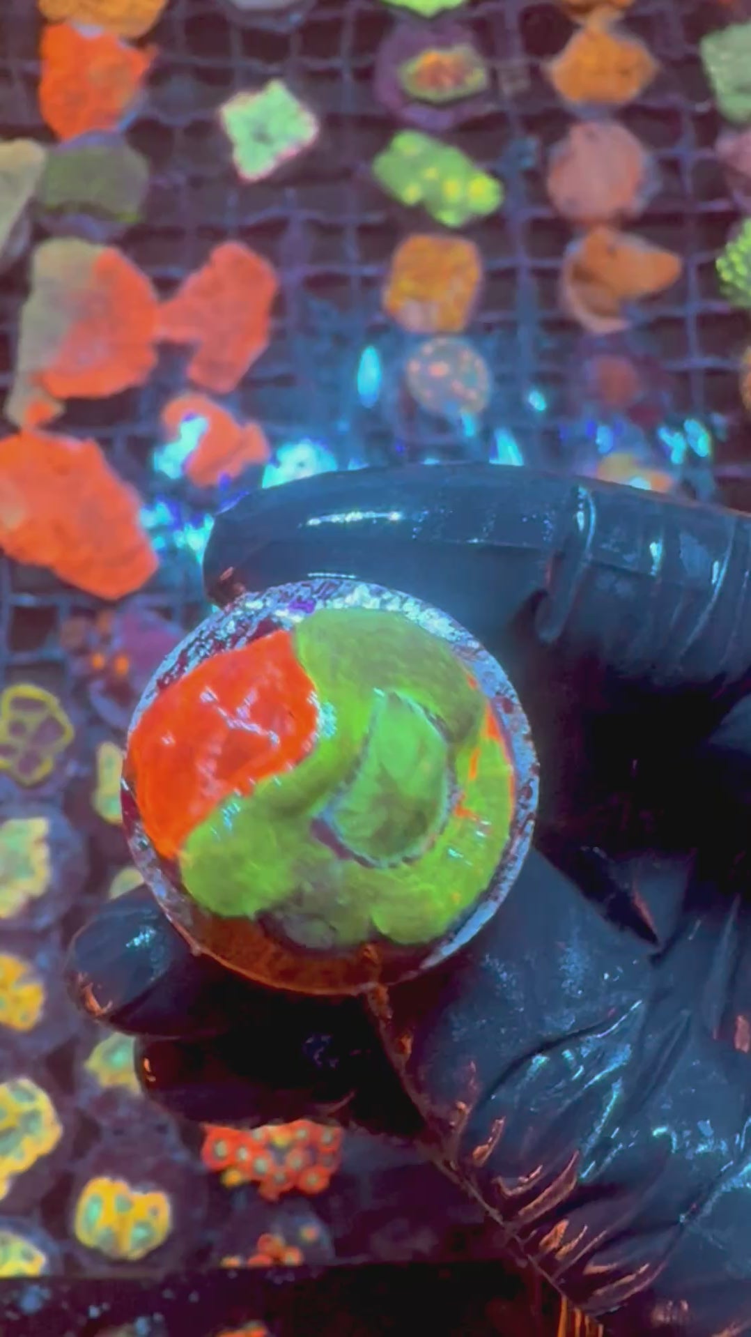 Der Bleeding Apple Bowerbanki Korallen-Ableger beeindruckt mit seinen intensiven Farben und hoher Stabilität. Diese Koralle wächst gut und eignet sich ideal für Einsteiger und erfahrene Meerwasseraquarianer.