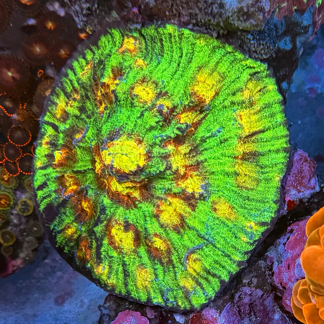 Der DR Green G. Korallen-Ableger beeindruckt mit seinen intensiven Farben und hoher Stabilität. Diese Koralle wächst gut und eignet sich ideal für Einsteiger und erfahrene Meerwasseraquarianer.